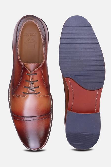 Brown derby shoes crafted from genuine leather featuring a cushioned footpad
