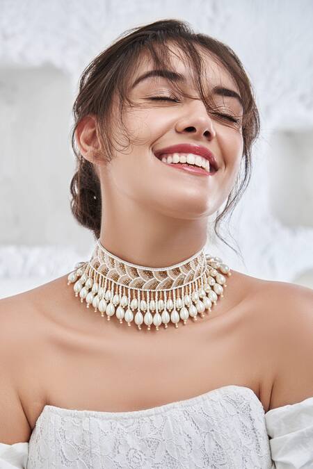 White Beads Hazel Choker