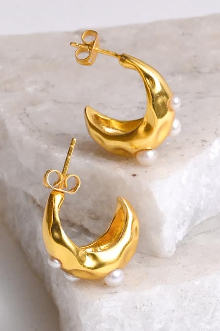 Unique crescent shape with pearl detailing, Lightweight design under 30 grams, Push back closure for secure fit