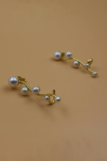 Gold plated earcuffs featuring a wavy design adorned with pearls
