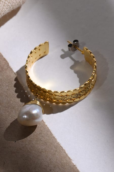 Circular ornamentation on hoops, Elegant pearl drop detail