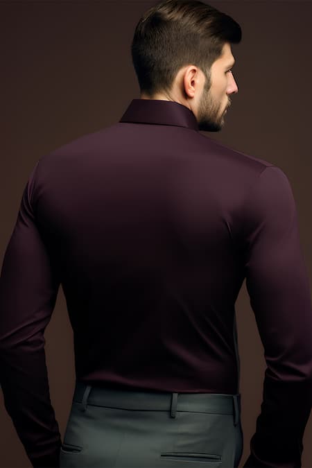 Maroon shirt featuring a placed colourblock panel and a shirt collar