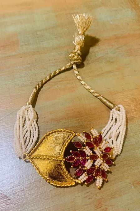 Buy_Hetal Shah_Gold Plated Pearls Ruby Stone And Embellished Bracelet _at_Aza_Fashions