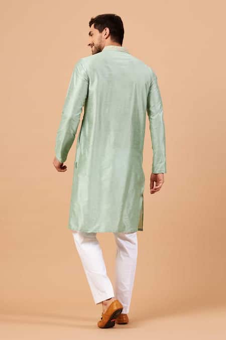Pastel green kurta featuring floral placement embroidery on the bodice and neckline. Paired with a crop pant for a coordinated look.