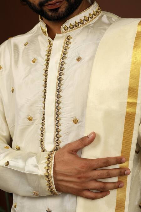Off White Silk Embroidery Arav Hand Kurta Set