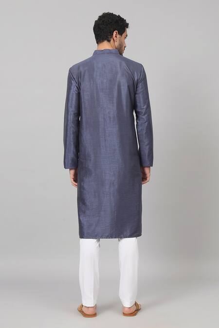 Blue Silk Embroidery Placement Motif Kurta With Pant