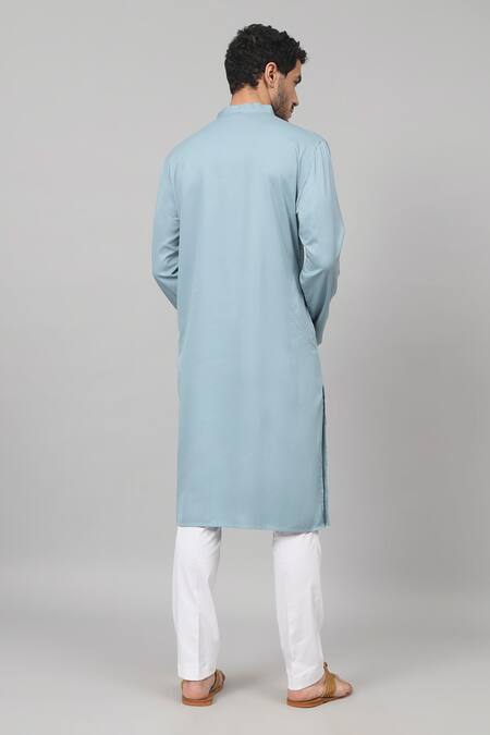 Blue kurta featuring resham embroidery in a floral placement pattern