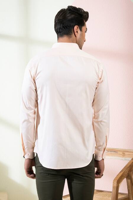 Peach shirt featuring contrast dot embroidery with a concealed button placket