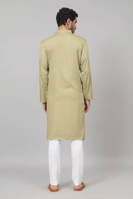 Olive green kurta featuring dori embroidery in a leaf placement pattern
