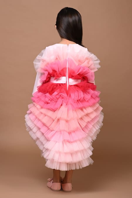 Buy_Hoity Moppet_Pink Tulle, Satin Ruffled Ombre High Low Dress _at_Aza_Fashions