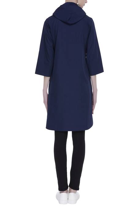 Shop_NOTEBOOK_Blue Hoodie Detail Kurta With Utility Pockets _at_Aza_Fashions