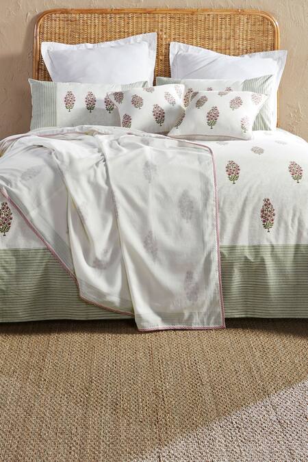 Pink, green cotton queen size single dohar with conifer block prints.