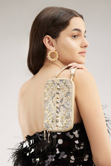 Textured pattern with metallic stone embellishments, Wrist chain for versatile carrying options