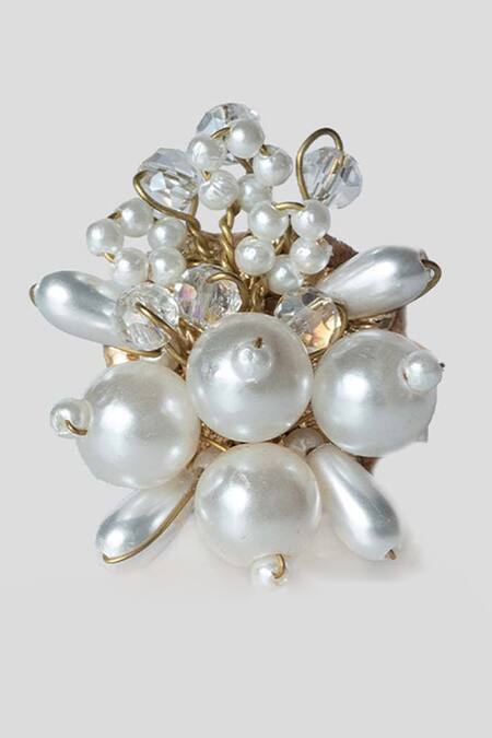 White Pearls, Beads Arctic Daisy Embellished Ring
