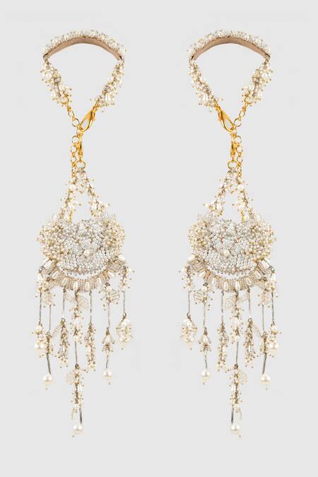 Buy_House Of D"Oro_White Pearls, Stones Purna Embellished Kaleeras_at_Aza_Fashions