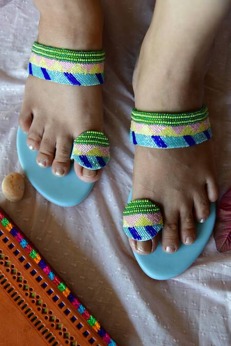 Buy_House Of Dhwni Singhvi_Multi Color Astric Embellished Toe Ring Flats _at_Aza_Fashions