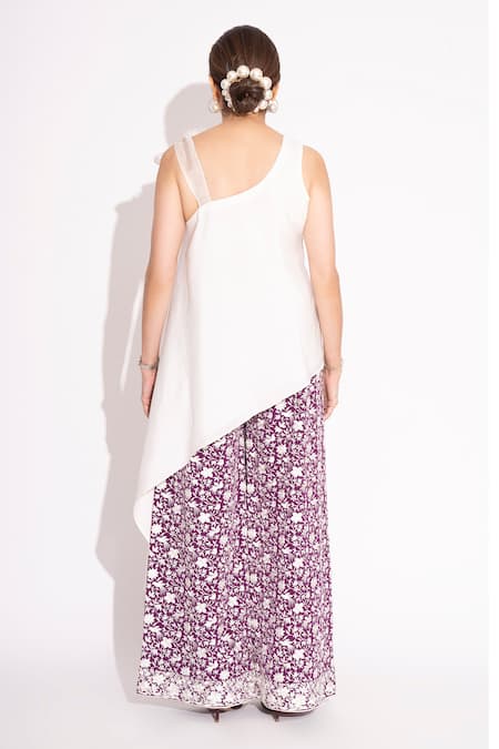 White Silk, Crepe Asymmetric Solid Top