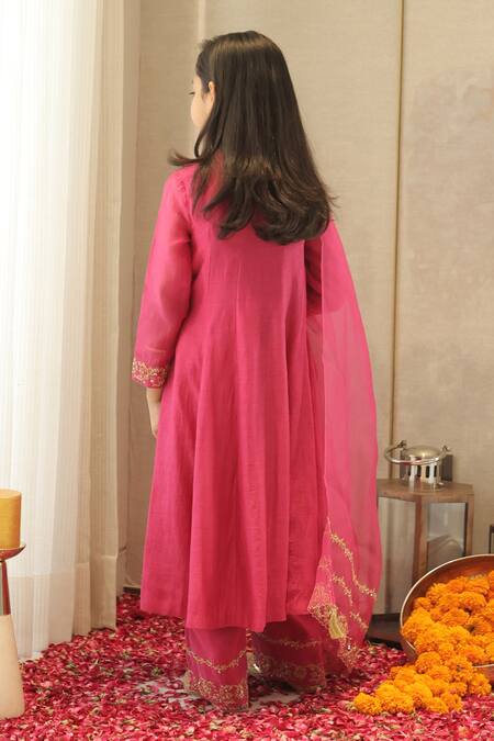 Buy_House Of Karmah_Pink Chanderi, Shantoon, Organza Embroidery, Zari Gulaabi Anarkali Set