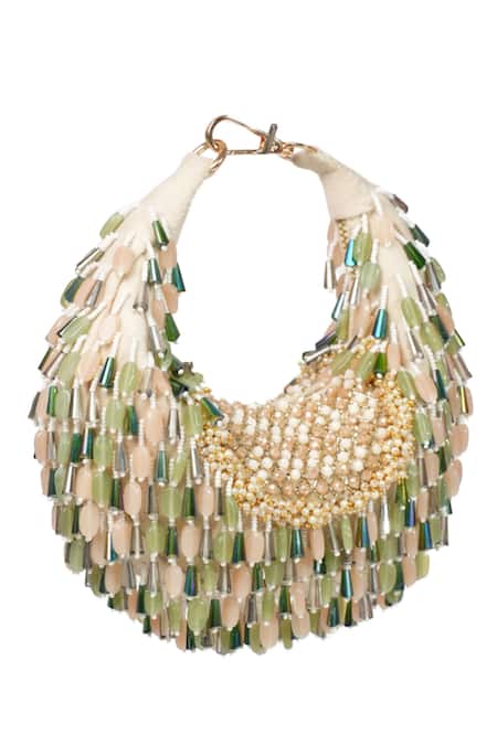 Green Beads, Crystals Alara Pastel Suede Hobo Bag