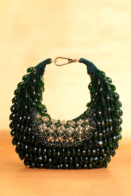 Green Crystals Alara Suede Embellished Hobo Bag
