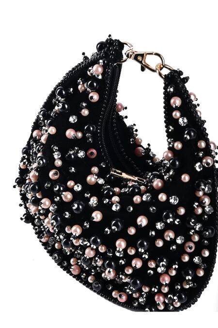 Black Pearls, Beads, Stones Aliya And Embellished Hobo Bag