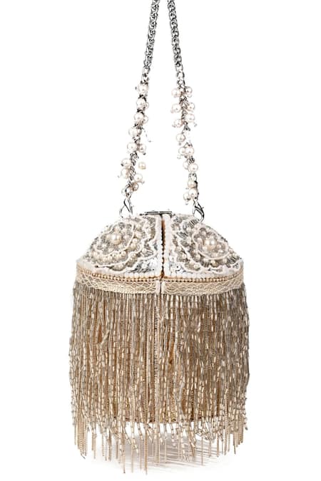 Silver Embroidery, Beads Ella Floral Embellished Potli Bag