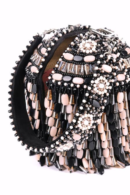 Black Crystals, Beads Elly Embellished Bucket Bag