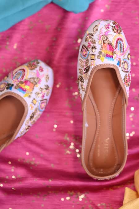 White Razzle Hand Embroidered Juttis