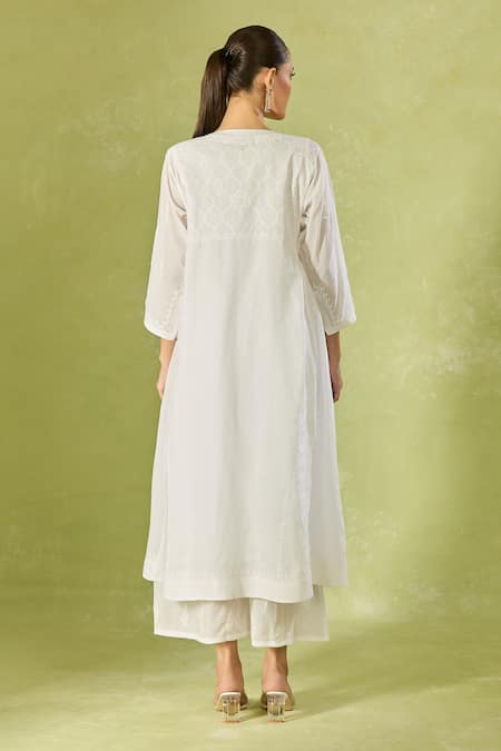 White Cotton Embroidery Keyhole Neck Lawn Kurta Set