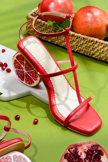 House Of Prisca_Red Embroidery Pom-grenade Heels_Online_at_Aza_Fashions