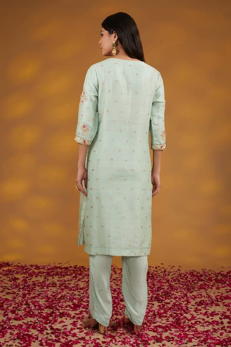 Blue Organza, Sequins, Pearls, Mughal Gul Zardozi Kurta Pant Set