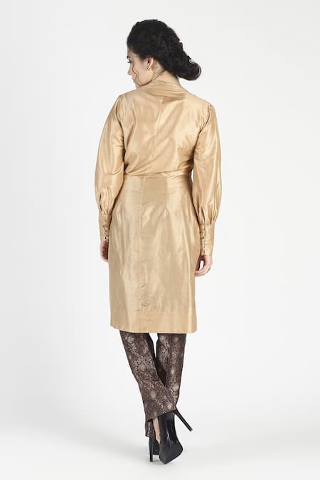 Bani gold overlap kurta with side tie-up & cuff buttoned placket.