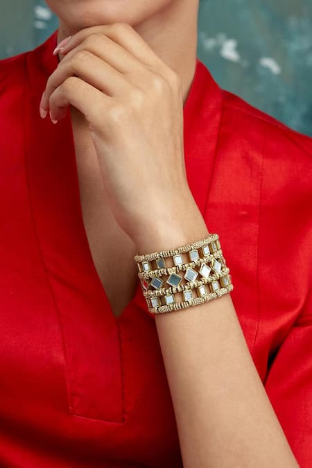 Gold Plated Mirrors Studded Falak Mumtaz Bracelet