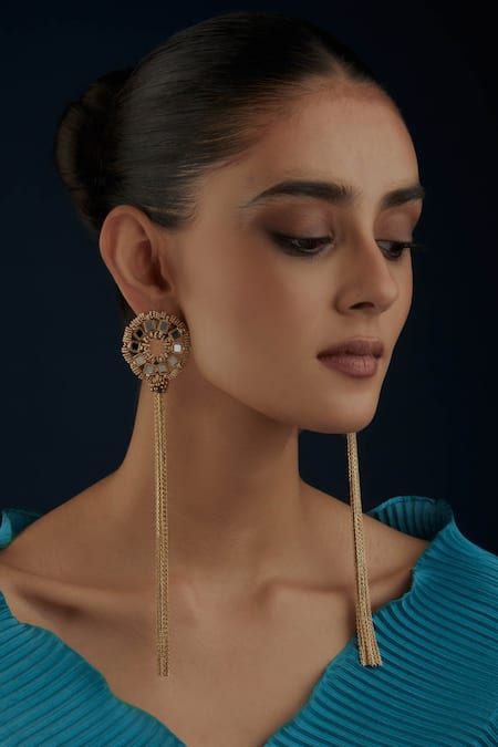 Gold Plated Beads, Mirrors Saar Beaded Fringe Earrings
