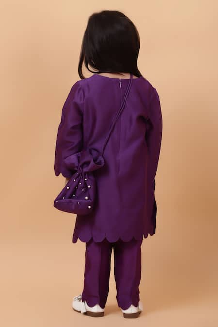 Buy_House Of Tushaom_Purple Chanderi Embroidered Cutdana Bunny Kurta With Pant_at_Aza_Fashions