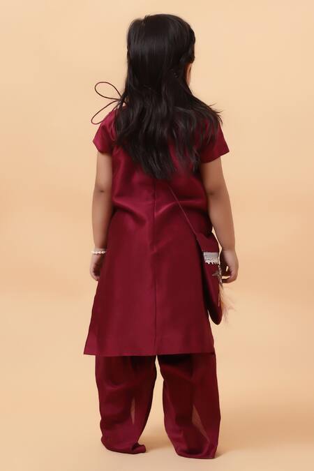 Buy_House Of Tushaom_Maroon Chanderi Embroidered Sequin Elephant Kurta With Dhoti Pant_Online_at_Aza_Fashions