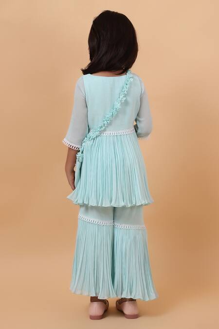 Buy_House Of Tushaom_Blue Georgette Beads, Sequins, Cut Work Embroidered Peplum Kurta Sharara Set