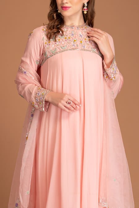 Pink Georgette And Organza Sequin & Cutdana, Thread Round Anarkali Set