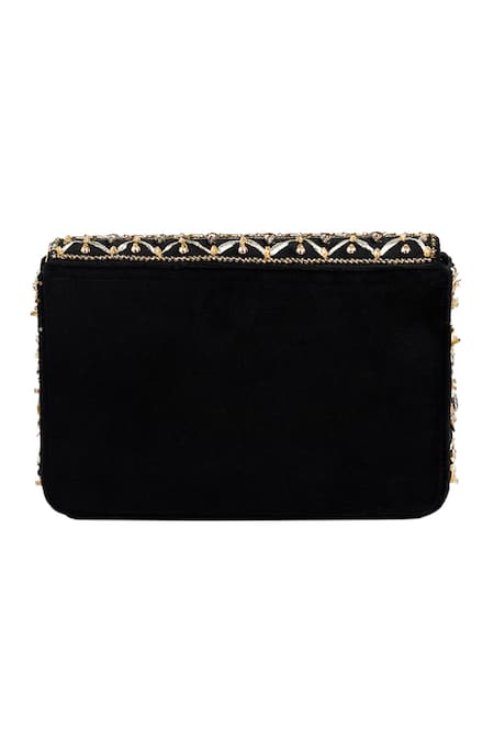 Buy_House Of Vian_Black Embroidery Ruhaaniyat Embellished Suede Flap Clutch With Sling _at_Aza_Fashions
