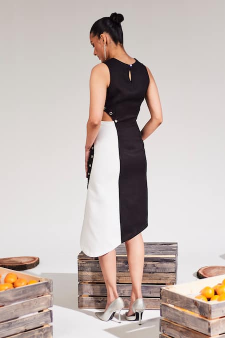 Black Crepe Round Neck Asymmetric Cutout Waist Dress