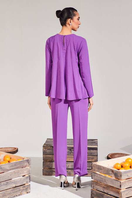 Purple Crepe Rhinestones Round Neck Limelight Embellished Top