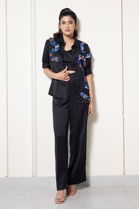 Only the black luxury satin shirt is being sold. The pant worn by the model is not for sale.