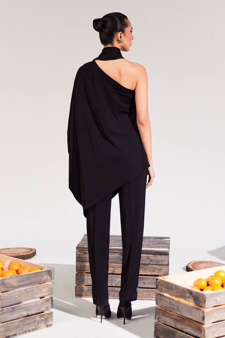 Black Crepe One Shoulder Vera Embellished Top