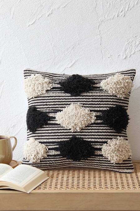 Black 100% Cotton Chaukadi Square Cushion Cover