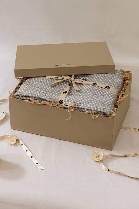 Blue 100% Cotton Embroidery Vindhya Throw Gift Box