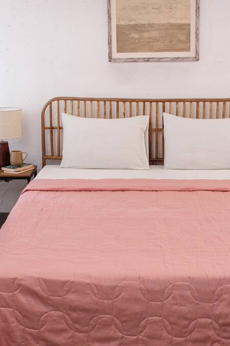 Pink Cotton Satin Silsako Geometric Quilted Bedcover