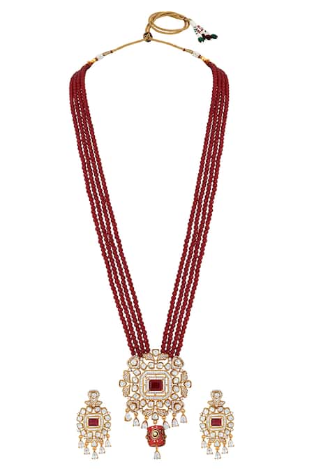 Floret cutwork design, Stone drops on earrings, Multi-strand necklace style