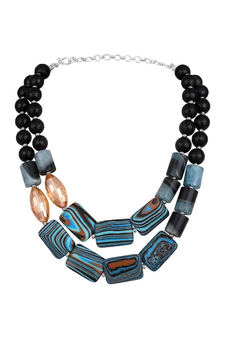 Multi Color Designer Blue Agate Statement Necklace