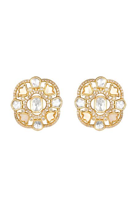 Cream Zari Florin Moissanite Kundan Polki Stud Earrings