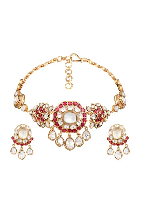 Kundan and synthetic ruby stone embellishments, Adjustable chain with hook closure, Micron gold plating for enhanced durability